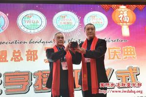 1、会徽粉色代表先进的科学文化2、浅兰色代表世界文明3、地图代表世界4、光武代表发扬光大中国武术5、IWSD代表国...